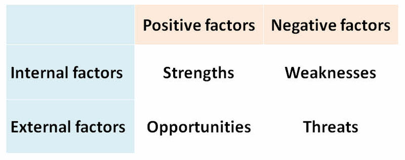 The result of the analysis is a matrix of positive and negative factors for management to address: